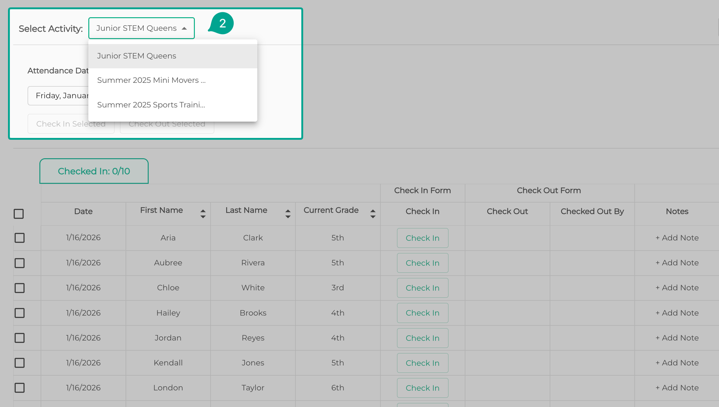 3. Select the activity you are taking attendance for.