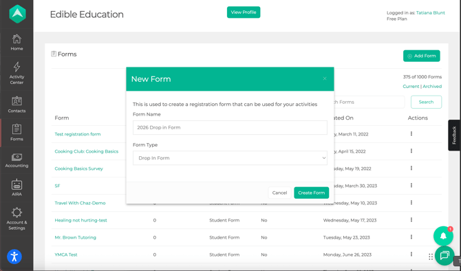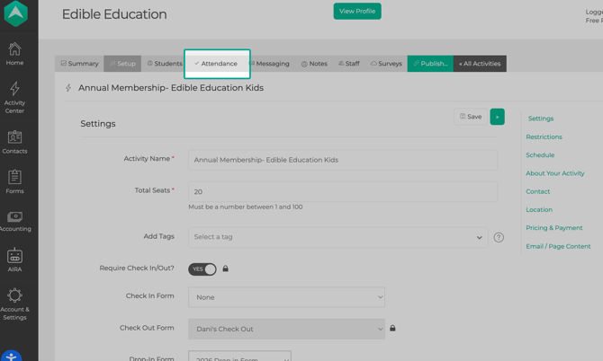 - Assign the Drop-In Form to an Activity: Drop-In is only available for activities that have a Drop-In form attached.