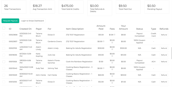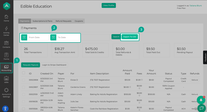 Click Accounting from the left-hand menu. This is where all payment activity lives. You will be taken to the Payments tab where you’ll see a list of payments made by parents. Each row shows one payment.
